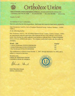 優(yōu)良的產(chǎn)品質(zhì)量來源于完善的質(zhì)量保證體系。 本公司的原料采購(gòu)、原料的輸入、中間過程、最終產(chǎn)品、 檢驗(yàn)和試驗(yàn)及產(chǎn)品銷售等都被納入ISO9001-2008質(zhì)保體系中,嚴(yán)格控制各個(gè)環(huán)節(jié)質(zhì)量, 確保向客戶提供穩(wěn)定質(zhì)量的產(chǎn)品。本公司所有生產(chǎn)原料均采用非動(dòng)物來源,產(chǎn)品獲得Kosher認(rèn)證。